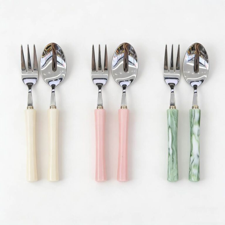 Colored Resin Acrylic Handle Stainless Steel Dessert Cutlery Set – Cute Knife, Fork & Spoon Set