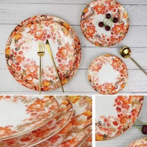 Product Features New Chinese Peony Gold-Rimmed Craft Luxurious peony and floral vine patterns, warm red-orange tones + gilded scrollwork, full of festive nobility and Oriental charm. Premium Bone China Material Delicate and translucent, lightweight yet durable, heat-resistant, easy to clean, dishwasher and microwave safe. Multi-Size Nested Set Three sizes in one set for charger, dinner, and appetizer plates, compact nested storage for all dining scenarios. Style & Occasion Versatility Perfect for Chinese family banquets, wedding celebrations, and holiday feasts, easily creating a festive and noble table setting. Customizable for Branding Supports custom colors, patterns, and logos to meet brand and themed event needs.
